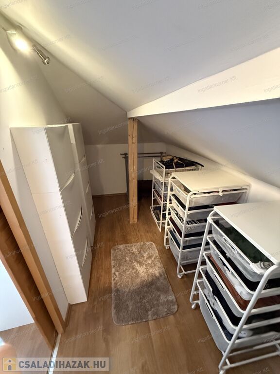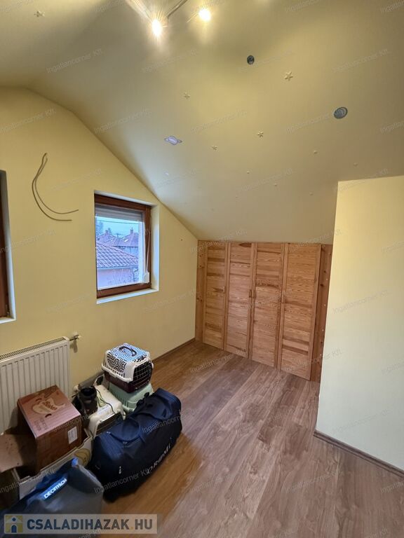 Az emelten 2 nagy méretű szoba ( egyik szoba KÖNNYEDÉN tovább osztható ), fürdőszoba - wc, gardrobe.