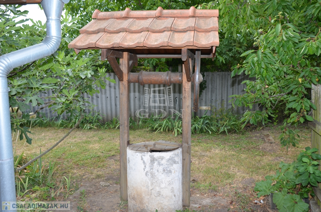 Az udvar rendezett, árnyas, többféle gyümölcsfával beültetett, és a hangulatot egy kerekeskút is gazdagítja – tökéletes környezet a nyugodt, vidéki élethez.