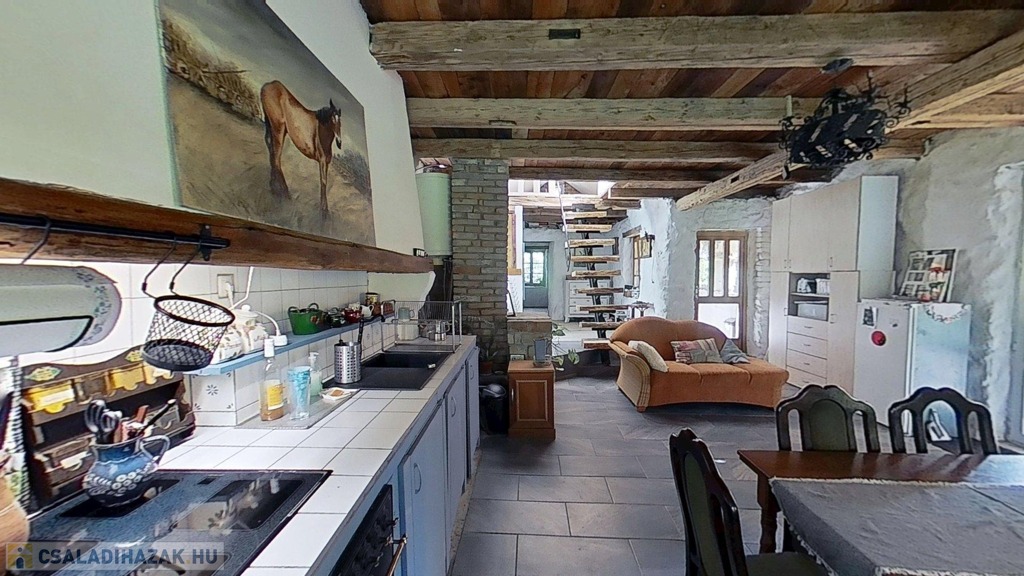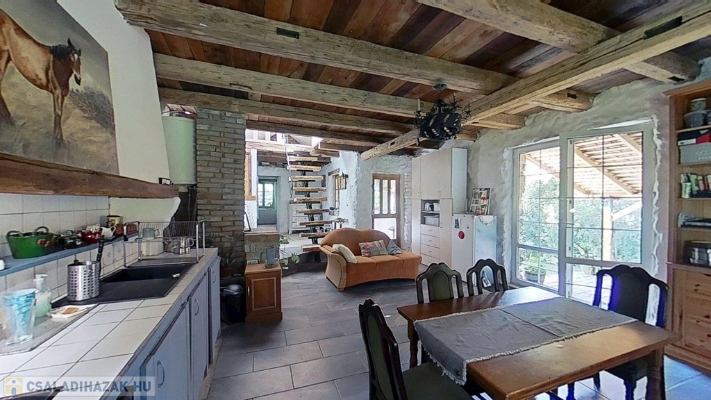 Taliándörögdön, a Művészetek Völgyének minden évben helyszínt adó településen ELADÓ különleges és egyedi karakterű, 110 m2-es, földszint plusz tetőtér-beépítéses, D-i tájolású bazaltkőház az igazán ritkaságok kedvelőinek.