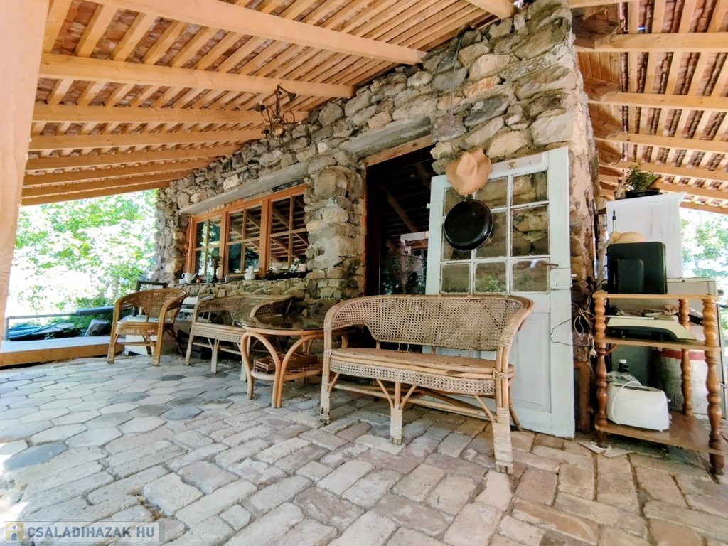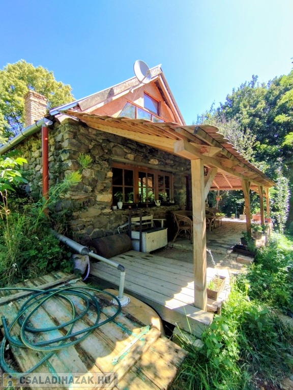 Valamint csatlakozik hozzá még egy 60 m2-es fa terasz a ház és patak közötti szurdok közepén, melyre akár fürdődézsa vagy jurta is tervezhető, vagy egy pergolás terasz.