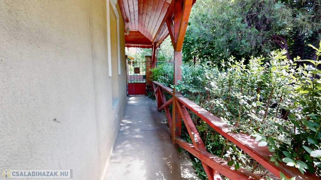 Az ingatlan egy szépen gondozott parkosított udvaron helyezkedik el, két bejárattal. A hátsó bejáratot egy elektromos kapu biztosítja, így autóval kényelmesen beparkolhatunk a két beállású garázsba.