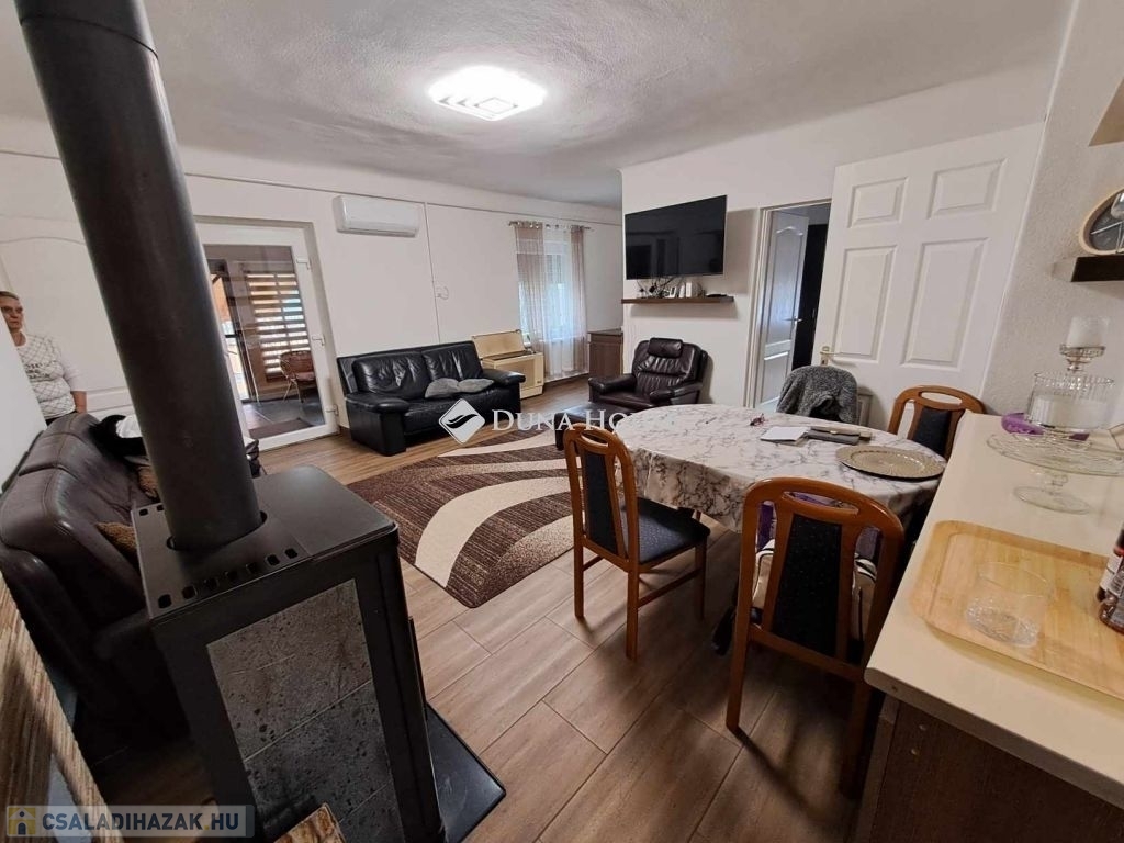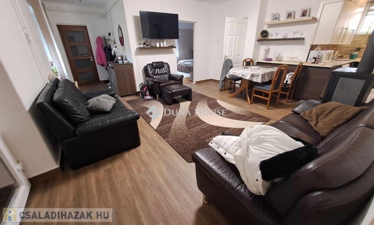 Tápiószelén eladó amerikai konyhás nappali + 2 szobás - téglából épült - felújított - házikó, mely beton alapra épült! A családi ház tetőtere beépíthető. A ház alatt egy 8 m2-es pince is kialakításra került, valamint 2 garázst találunk a kertben. A hátsó kertben egy 140 m2-es melléképület építése kezdődött meg, ahol a falak már állnak és kb. 1/3 részben már födém is került a falak fölé. (építési terv engedélyezve rá).Az épület elosztása kitűnő: Fedett teraszon keresztül lépünk be a tágas előszobába. Innen az amerikai konyhás nappaliba jutunk - itt a konyhabútor az ár részét képzi. Szemben egy fürdő/mosdó helyiség lett kialakítva, ahol zuhany és kád is kiépítésre került. Balra a nagyobb szoba található, mellette pedig egy kisebb kamra. A nappali jobb oldalán egy másik nagy szoba került kialakításra, mellettük pedig 2 db kamra. (ezek alatt pince helyezkedik el). Az épülethez hozzáépítve egy garázst is találunk, valamint még egy nagyobb - mobil garázs is kialkításra került.Összközműves és tehermentes az ingatlan! Az otthon melegét több fűtési lehetőség is adja: klíma, gázkonvektor és kandalló is beépítésre került.Az ingatlanban 10 éve a burkolatok cseréje és a belső falak festése megtörtént és a fürdőszoba felújítása is. Villanybojler is lecserélésre került és egy kandalló beéítése is ekkor történt. 5 éve a nyílászárók is kicserélésre történtek. A klíma 2 évvel ezelőtt került bekötésre. A villanyvezetékeket 2023-ban kicserélték teljsen az egész épületben.A villanyóra 20 amperesre lett bővítve.NÉzzük meg együtt!Közlekedés: Minden a közelben található 5-10 perces sétányira (óvoda, iskola, piac, ABC-k, orvosi rendelő, gyógyszertár, posta, zöldséges, húsbolt, pékség stb.)Vonattal Budapest Keleti PU - Szolnok között, valamint volánbusszal a környező településekre (Nagykáta és Cegléd között).
