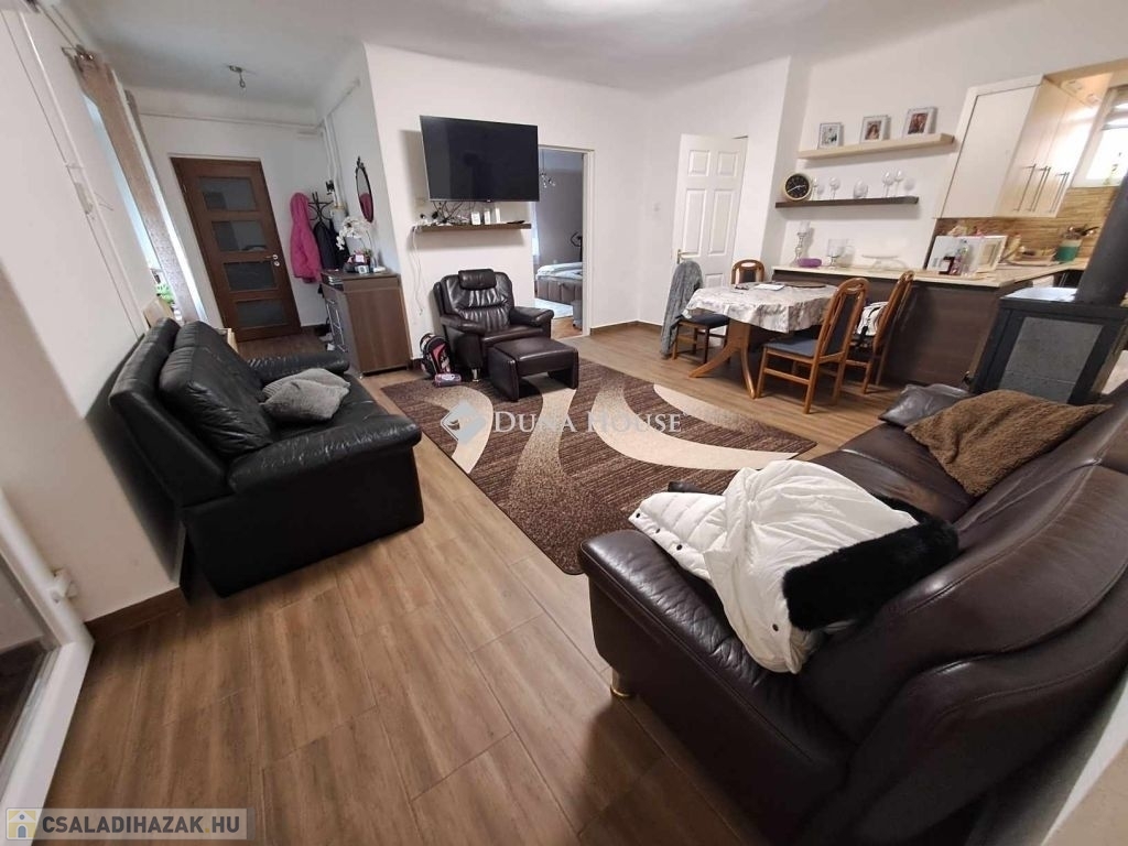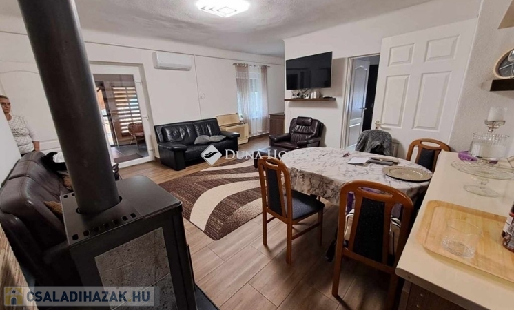 Tápiószelén eladó amerikai konyhás nappali + 2 szobás - téglából épült - felújított - házikó, mely beton alapra épült! A családi ház tetőtere beépíthető. A ház alatt egy 8 m2-es pince is kialakításra került, valamint 2 garázst találunk a kertben. A hátsó kertben egy 140 m2-es melléképület építése kezdődött meg, ahol a falak már állnak és kb. 1/3 részben már födém is került a falak fölé. (építési terv engedélyezve rá).Az épület elosztása kitűnő: Fedett teraszon keresztül lépünk be a tágas előszobába. Innen az amerikai konyhás nappaliba jutunk - itt a konyhabútor az ár részét képzi. Szemben egy fürdő/mosdó helyiség lett kialakítva, ahol zuhany és kád is kiépítésre került. Balra a nagyobb szoba található, mellette pedig egy kisebb kamra. A nappali jobb oldalán egy másik nagy szoba került kialakításra, mellettük pedig 2 db kamra. (ezek alatt pince helyezkedik el). Az épülethez hozzáépítve egy garázst is találunk, valamint még egy nagyobb - mobil garázs is kialkításra került.Összközműves és tehermentes az ingatlan! Az otthon melegét több fűtési lehetőség is adja: klíma, gázkonvektor és kandalló is beépítésre került.Az ingatlanban 10 éve a burkolatok cseréje és a belső falak festése megtörtént és a fürdőszoba felújítása is. Villanybojler is lecserélésre került és egy kandalló beéítése is ekkor történt. 5 éve a nyílászárók is kicserélésre történtek. A klíma 2 évvel ezelőtt került bekötésre. A villanyvezetékeket 2023-ban kicserélték teljsen az egész épületben.A villanyóra 20 amperesre lett bővítve.NÉzzük meg együtt!Közlekedés: Minden a közelben található 5-10 perces sétányira (óvoda, iskola, piac, ABC-k, orvosi rendelő, gyógyszertár, posta, zöldséges, húsbolt, pékség stb.)Vonattal Budapest Keleti PU - Szolnok között, valamint volánbusszal a környező településekre (Nagykáta és Cegléd között).