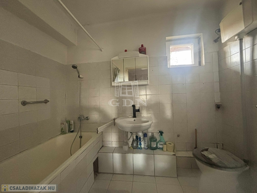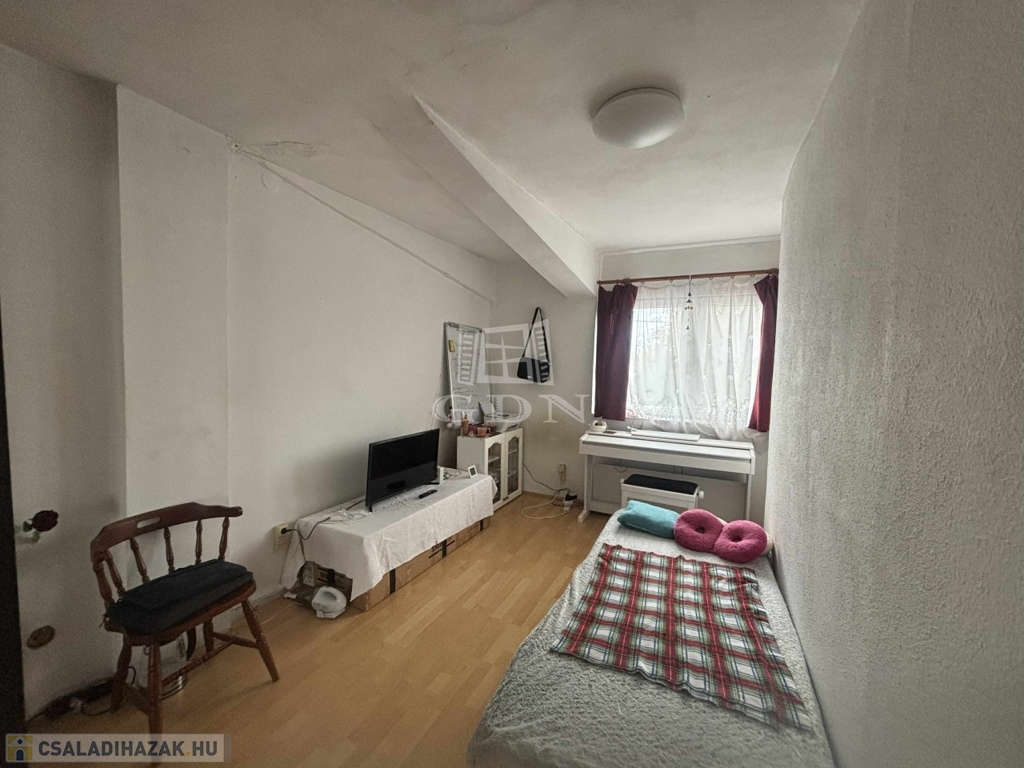A 90-es években épült ingatlan tégla–vas–beton szerkezetű, három bejárattal, szinteltolásos kialakítással. Igény szerint lakható állapotú, de felújításra szorul.