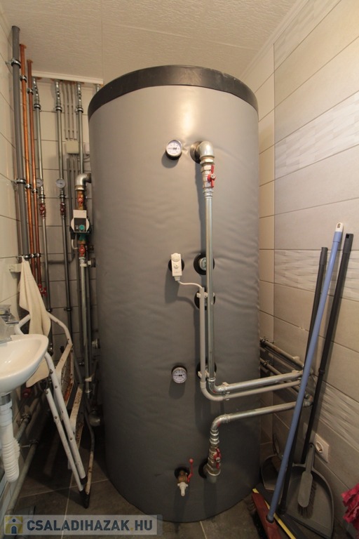 Az otthon fűtéséről egy vízteres kandalló gondoskodik, amelyhez egy 750 literes puffertartály csatlakozik, biztosítva az energiatakarékos működést és az egyenletes hőelosztást. A nyári hónapok kényelmét két kiállású klíma biztosítja. Az ingatlan háromfázisú, 3x32 amperes elektromos hálózattal rendelkezik, és a telek területén belül a gáz is elérhető, további komfortot és lehetőségeket teremtve.