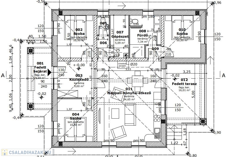 A ház praktikus elosztása a következő: