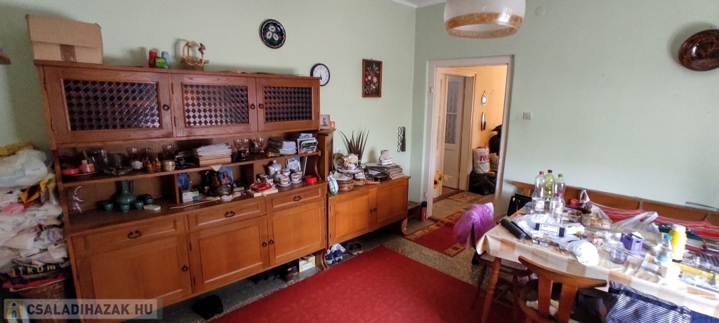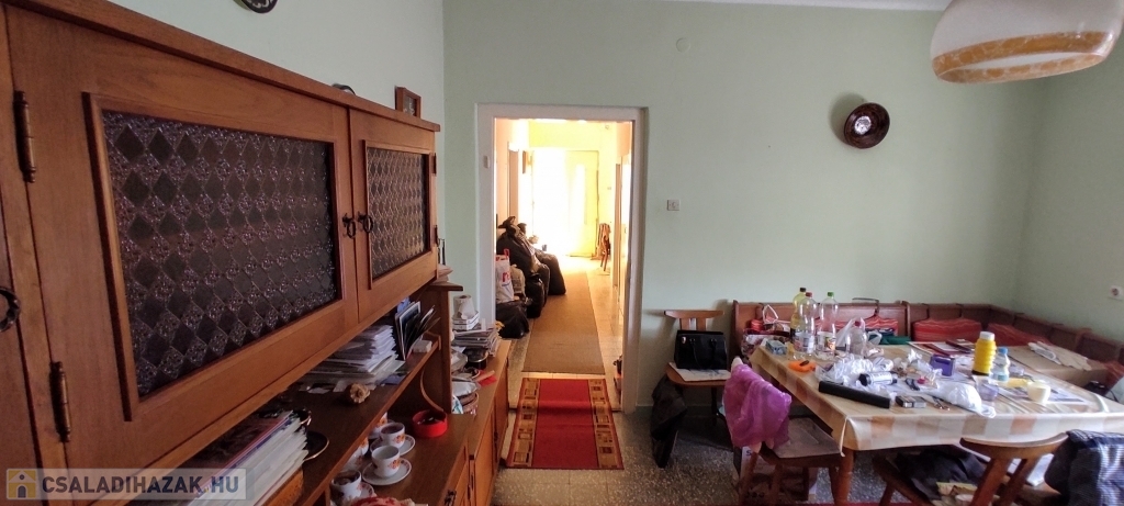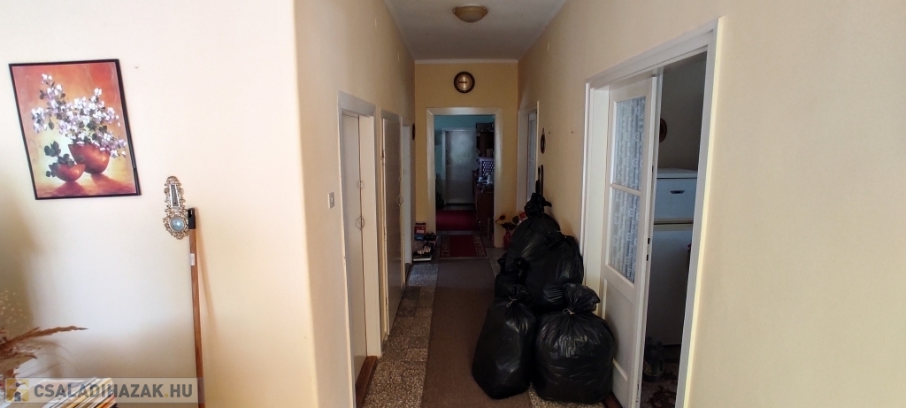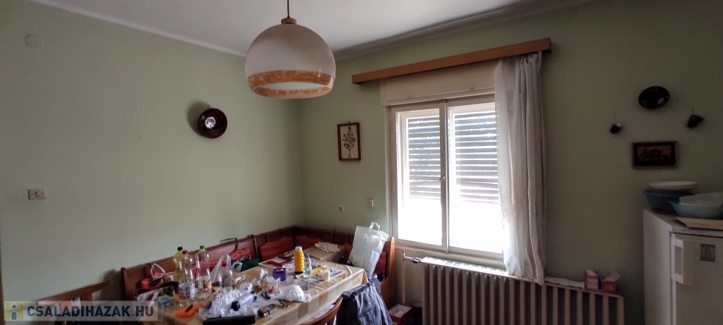-Helyiségei: lakószinten nagy méretű szobák és étkező, részben külön bejárattal, külön fürdő és WC, külön konyha és étkező, jelenleg 2 kamra, előszoba.
