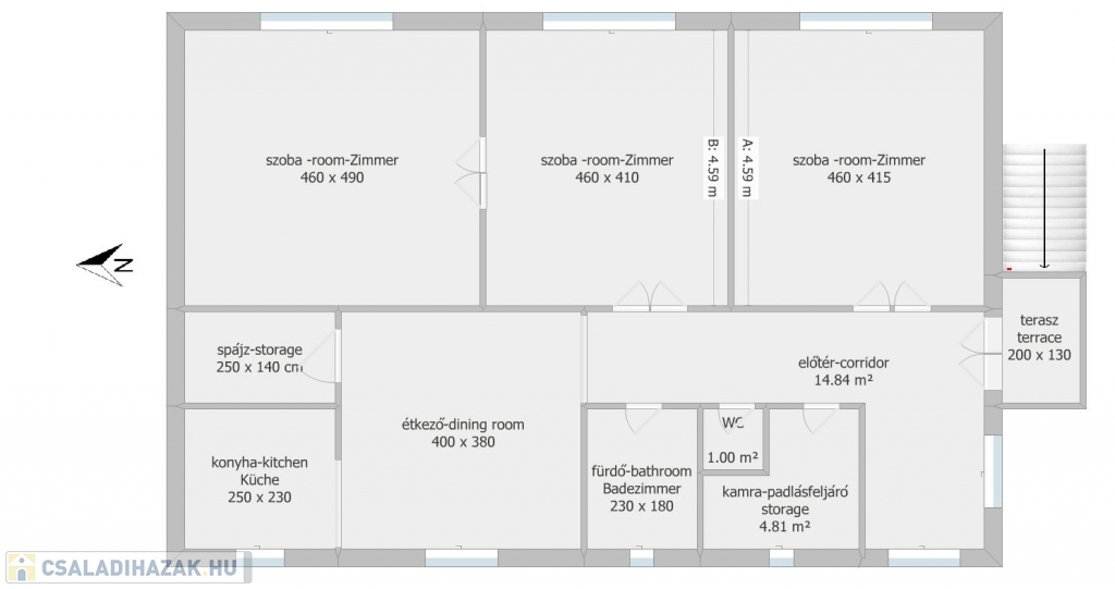 Mérete: 110 nm nettó hasznos alapterület a lakószinten.