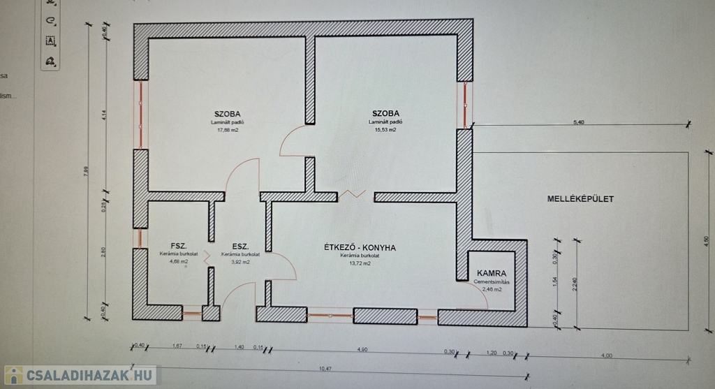 Falazat: kő, amely 5 cm szigetelést kapott, jó állapotban