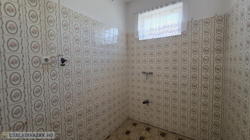 A földszinten tágas nappali, nagy méretű konyha és fürdőszoba található, valamint a már említett garázs, amely közvetlenül a ház része. A konyhában egy nagyméretű, jó állapotú cserépkályha kapott helyet, amely nemcsak hatékony fűtési megoldás, hanem a tér hangulatának meghatározó eleme is. A fűtés többféle módon megoldott: gázkazán és vegyes tüzelésű kazán biztosítja a központi fűtést, emellett villanykályha és gázkonvektor is rendelkezésre áll. Az ingatlanban ipari áram is elérhető.