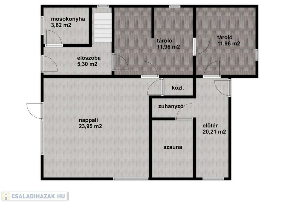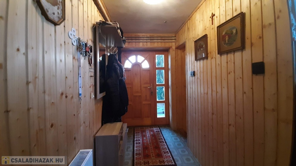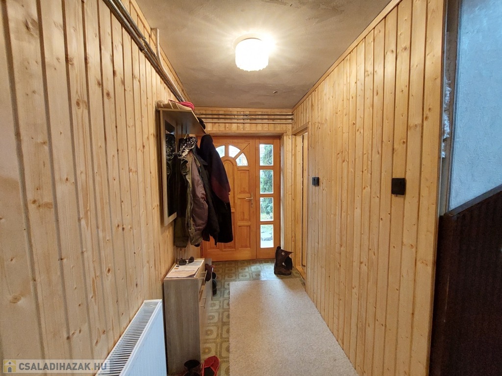 Az előszobából, mely lambéria borítást kapott, nyílik egy mosókonyha.