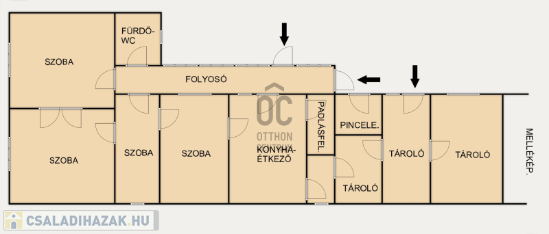 ✅ Födém: első rész betonfödémes, hátsó rész fa födémes
