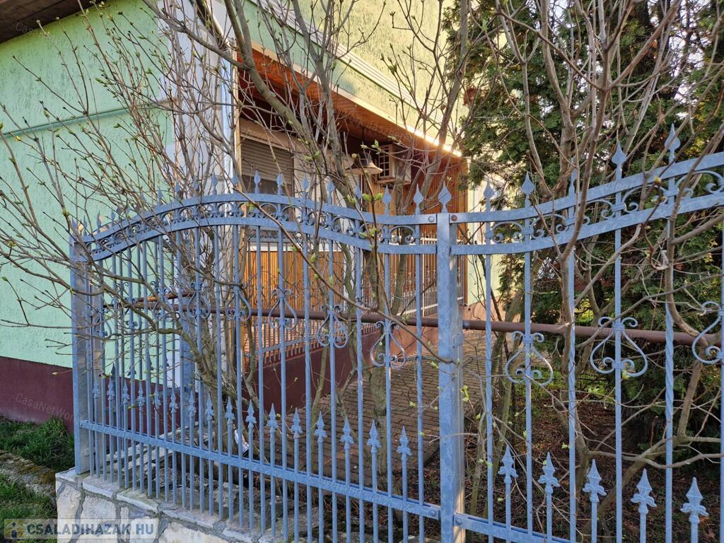 Az utcafrontot igényes kovácsoltvas kerítés díszíti, a teljes telek körbekerített, amely biztonságot és esztétikus megjelenést biztosít.