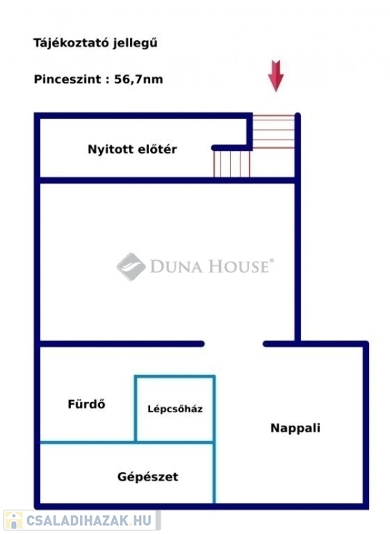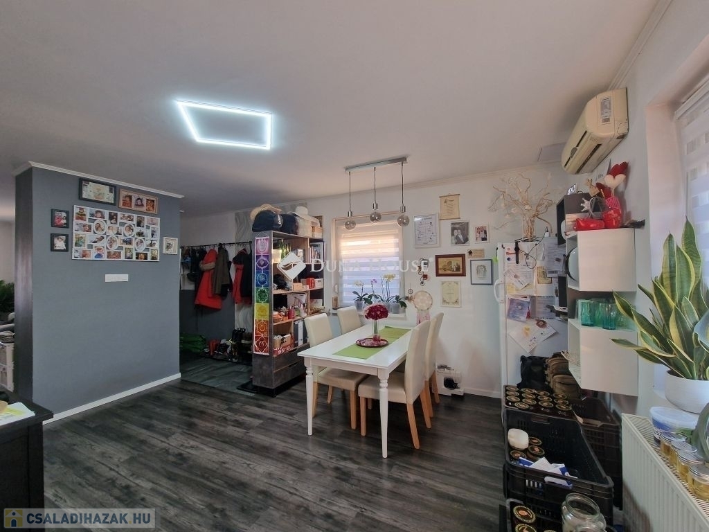 Alsó szint: Konyha + étkező, Nappali és egy nyitott előtér. Az alsó szint teljesen különálló lakórésznek van kialakítva, így akár egy különálló lakóegység is kialakítható vagy otthon végezhető vállalkozásra is alkalmas. Az ingatlan elrendezése ideális nagy családok számára, vagy akár több generáció számára, mivel mindhárom szinten biztosítottak a kényelmes, különálló helyiségek.