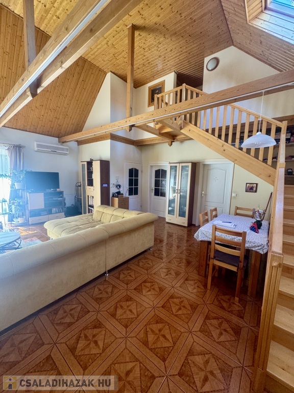 Az ingatlan kétszintes, összesen kb. 170 nm-es. Alapterülete 110 nm, melyet a galériák beépítésével bővítettek. Így akár többgyermekes családok számára is ideális, tágas életteret biztosít.