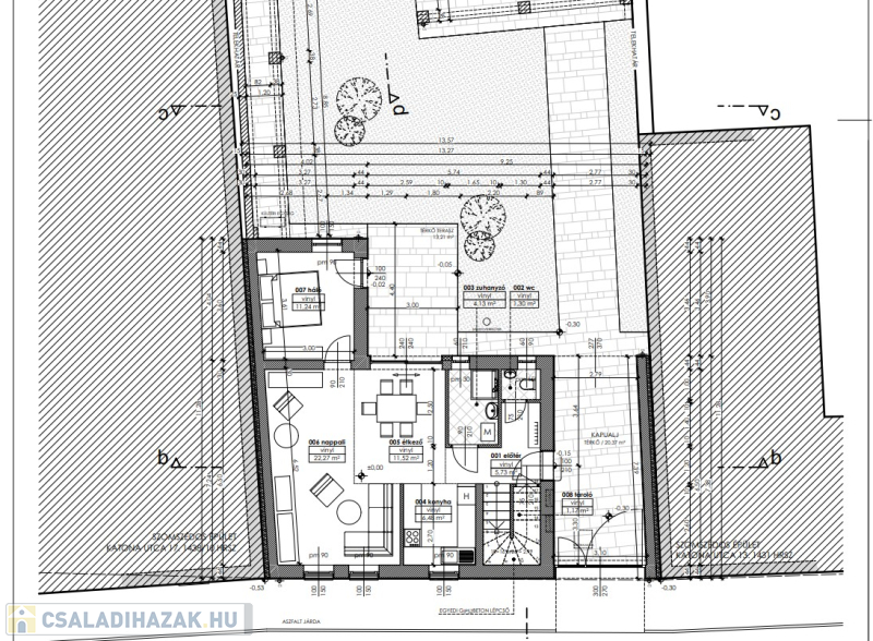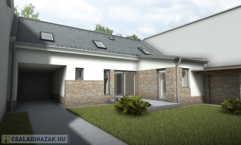 Az építmény egylakásos,önálló telken álló lakóépületként került kialakításra,zárt belső udvarral,2 fedett .