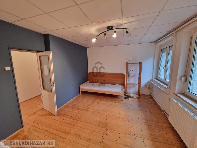 Emelet: 3 szoba, előszoba, valamint egy fürdő-WC. Az emelet kívülről és belülről is megközelíthető. A két lakrész megosztásának köszönhetően a rezsivédet