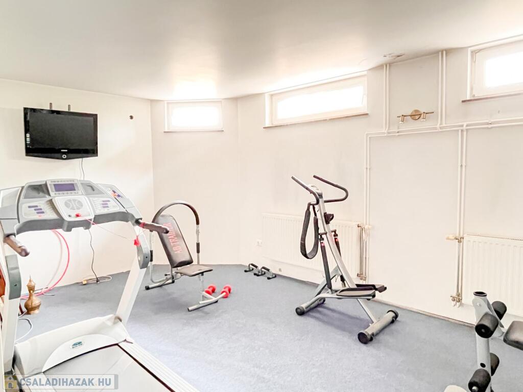 SZUTERÉN/ALAGSOR: edzőterem infraszaunával, ideális műhely vagy tároló, mosókonyha, zuhanyzó, külön WC, kazánház és konyha. Minden, amire egy többcélú tér kialakításához szükség lehet.