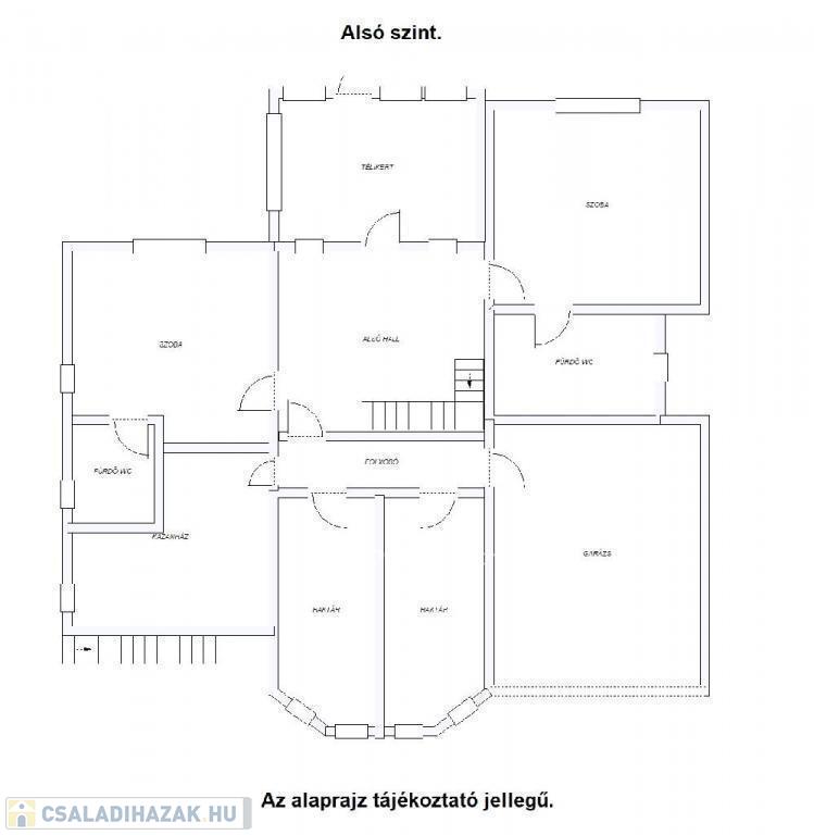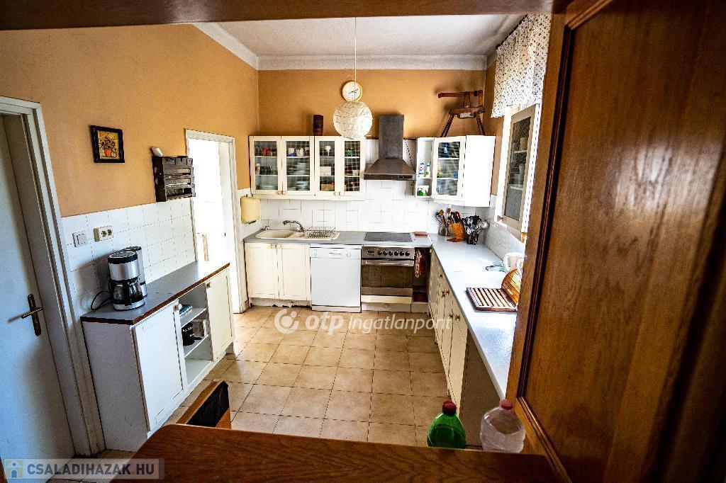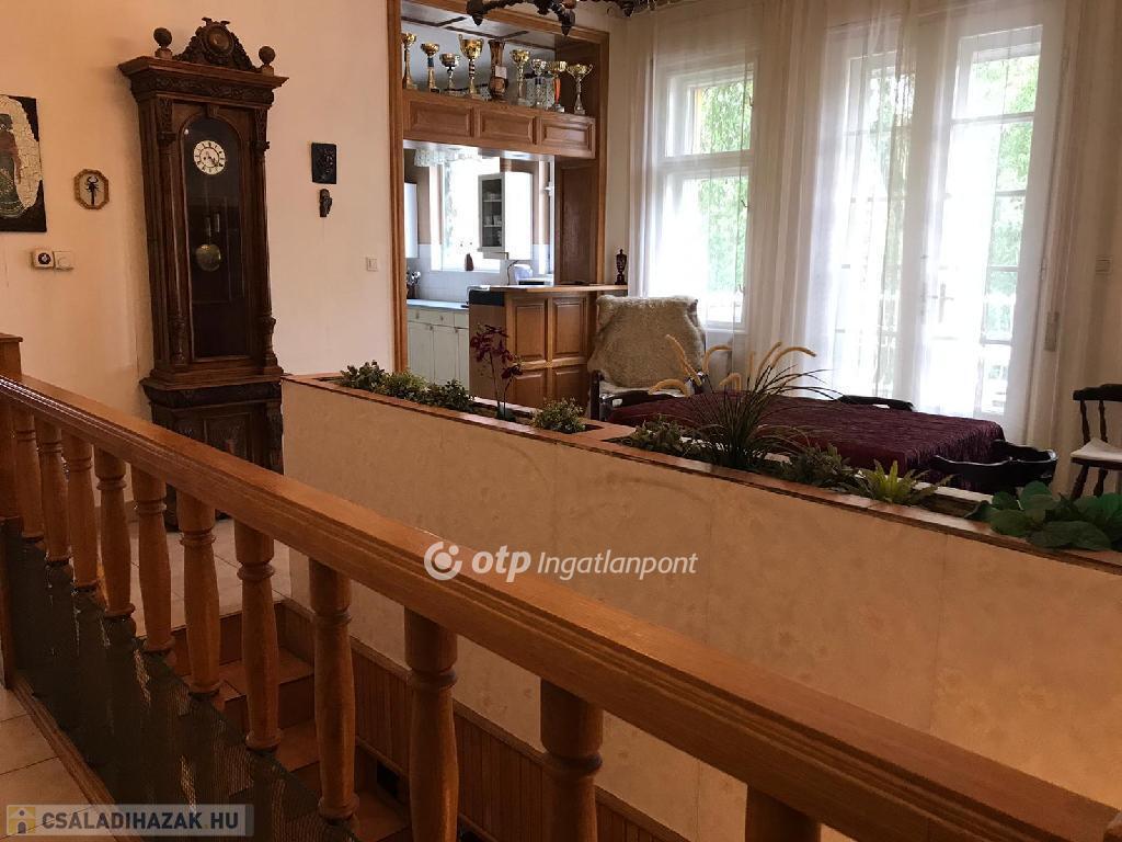 Emelet: világos nappali, 3 háló, különálló konyha, étkező, 2 fürdő, vendég-wc, terasz.