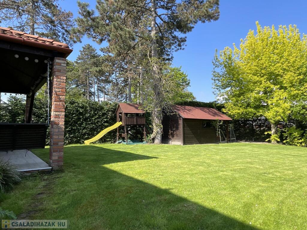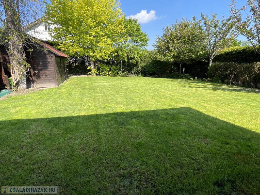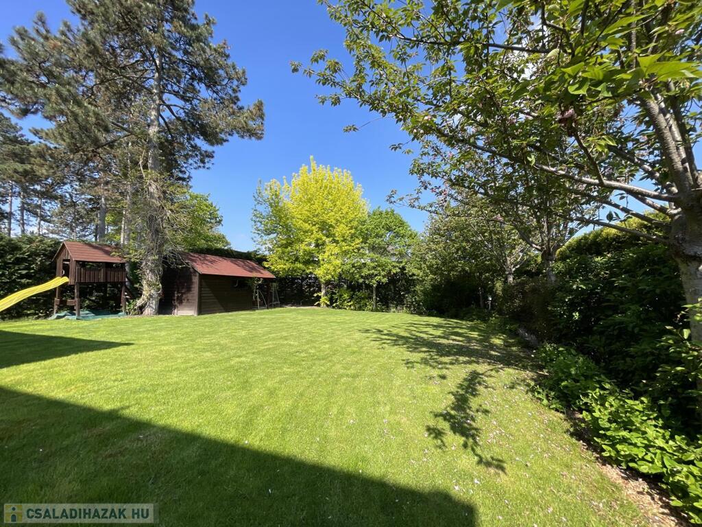 Az 867 m²-es, gondozott telek kertépítész által tervezett, öntözőrendszerrel felszerelt díszkertje garantálja a természet közelségét. A hangulatos, intim kertben díszcserjék, fenyők és egy gyönyörű, árnyékot adó díszfa kapott helyet. A hátsó részen egy tágas, fedett terasz biztosítja a családi és baráti összejövetelek tökéletes helyszínét.