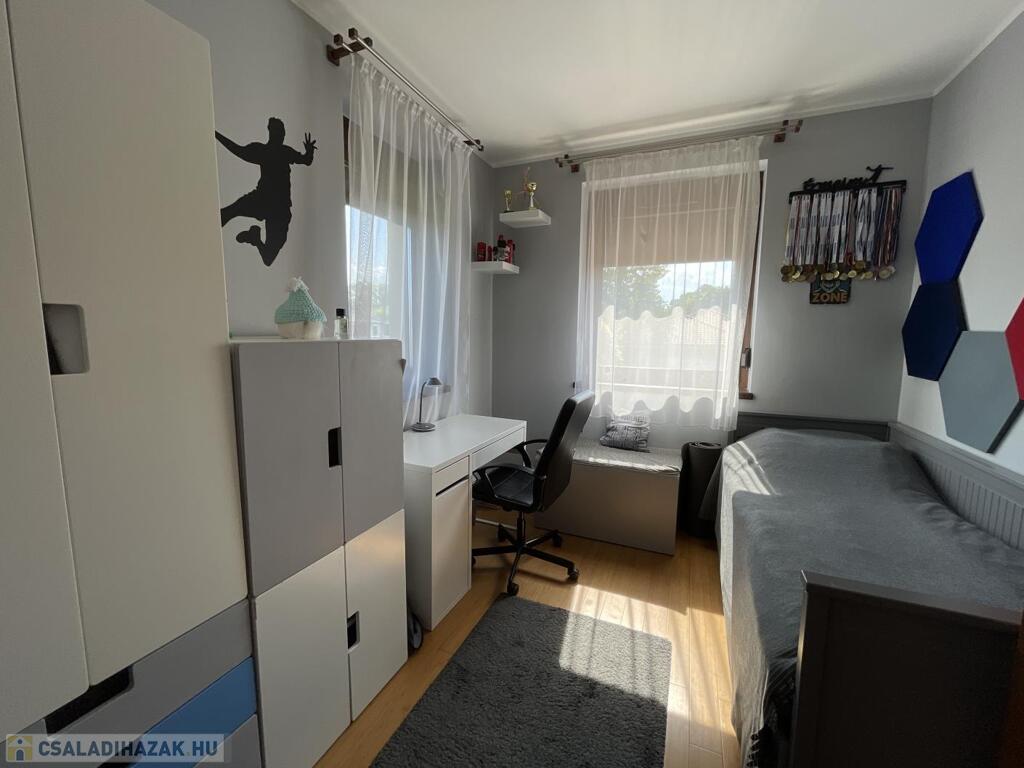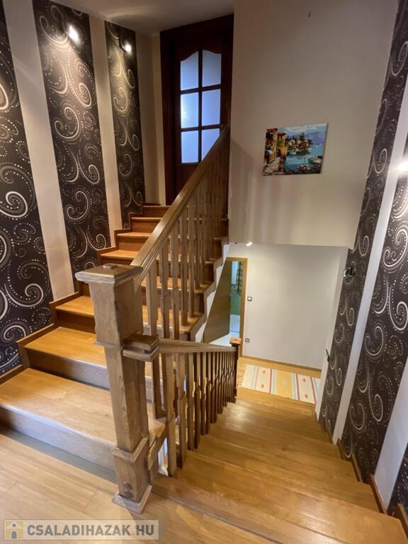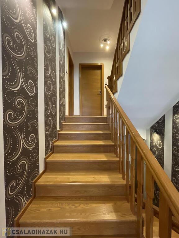 A felső szinten négy kényelmes méretű szoba és két fürdőszoba található, így ideális nagyobb család vagy több generáció számára is. A szobák jól szeparálhatóak, a természetes fény minden helyiséget átjár, a burkolatok és ajtók minőségi, időtálló anyagokból készültek.
