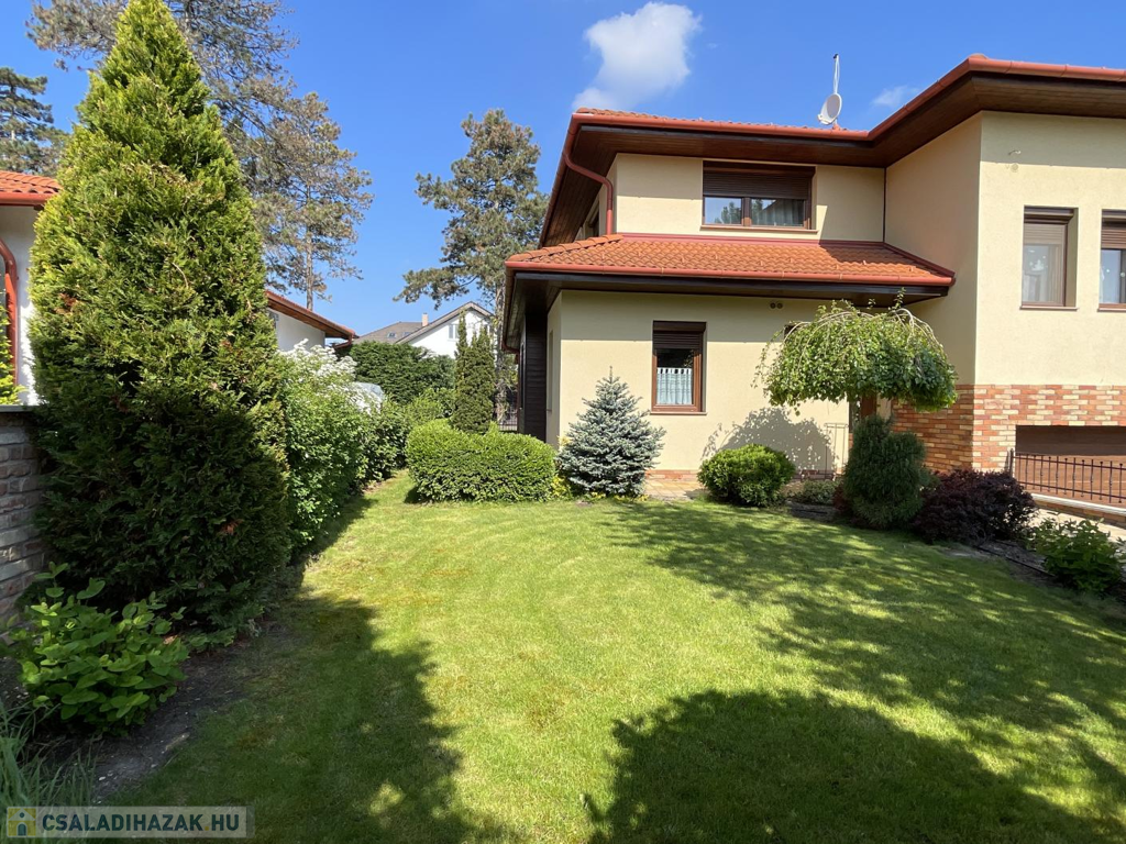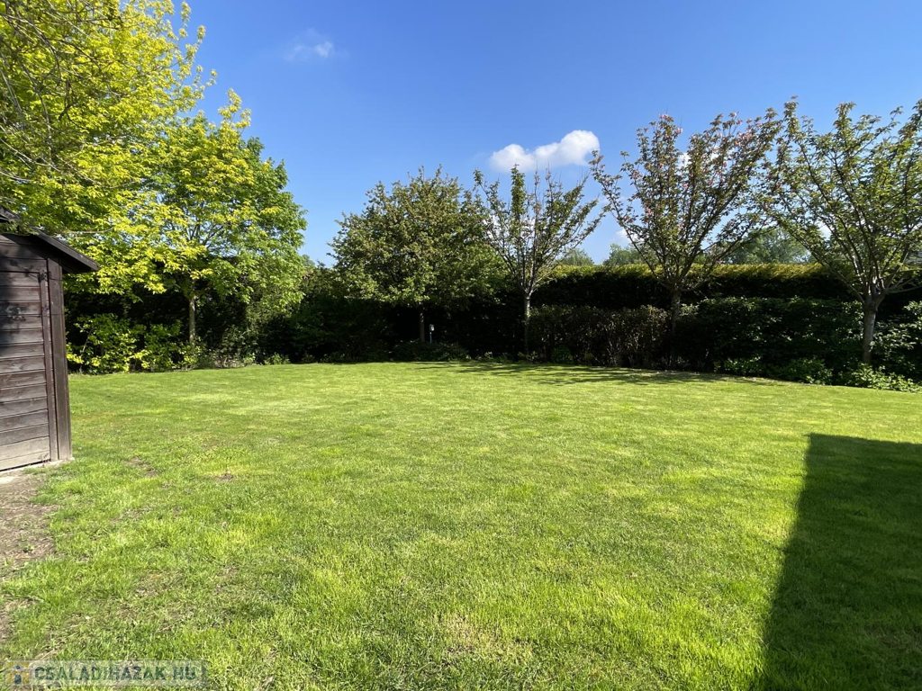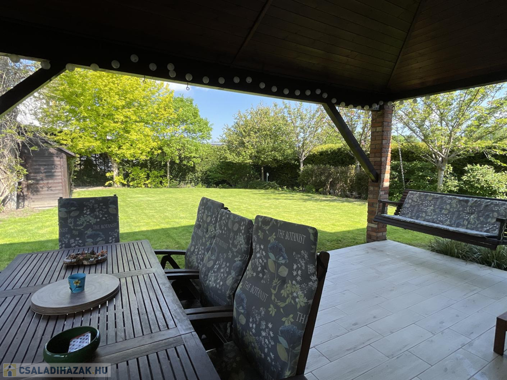 Az 867 m²-es, gondozott telek kertépítész által tervezett, öntözőrendszerrel felszerelt díszkertje garantálja a természet közelségét. A hangulatos, intim kertben díszcserjék, fenyők és egy gyönyörű, árnyékot adó díszfa kapott helyet. A hátsó részen egy tágas, fedett terasz biztosítja a családi és baráti összejövetelek tökéletes helyszínét.