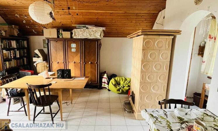 A ház 60 m2, két szinten. A felső szint 30 m2, otthonos lakótérnek van kialakítva barátságos cserépkályha társaságában.