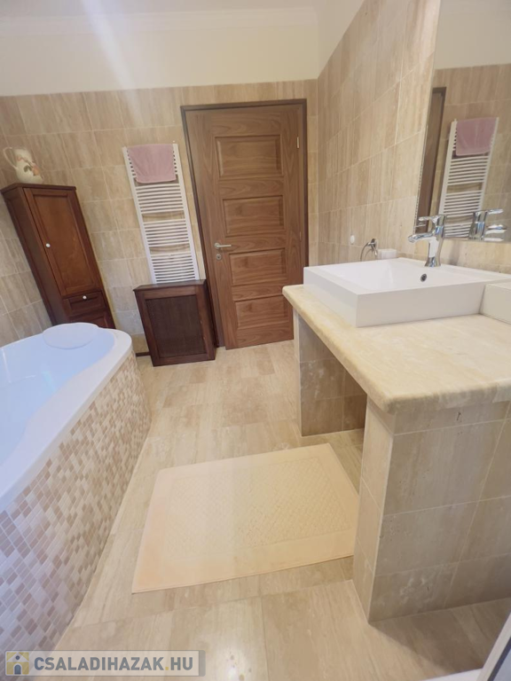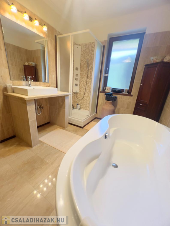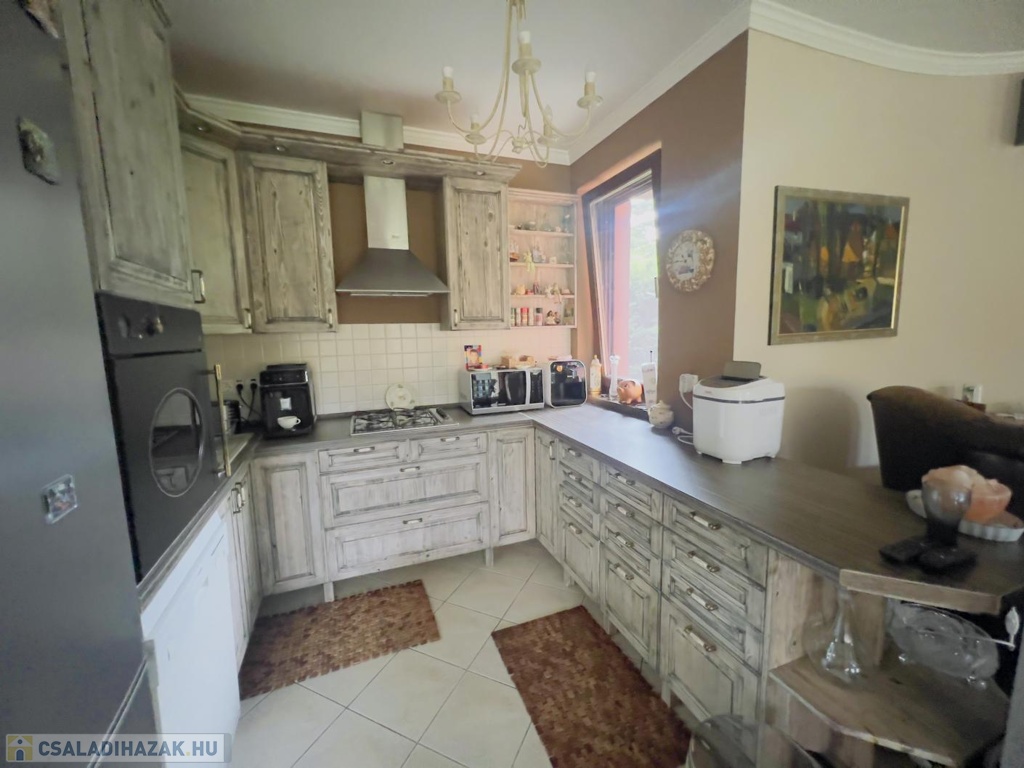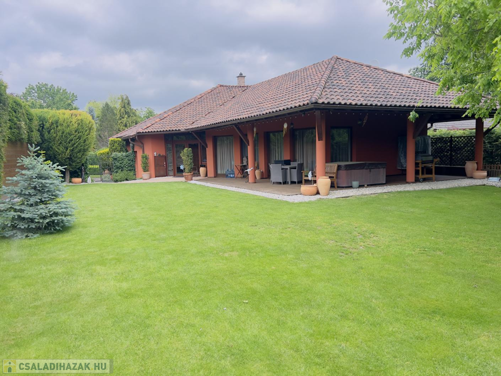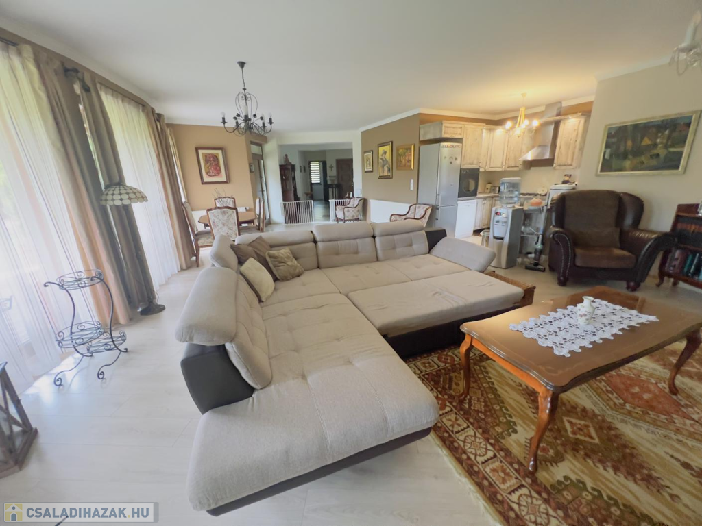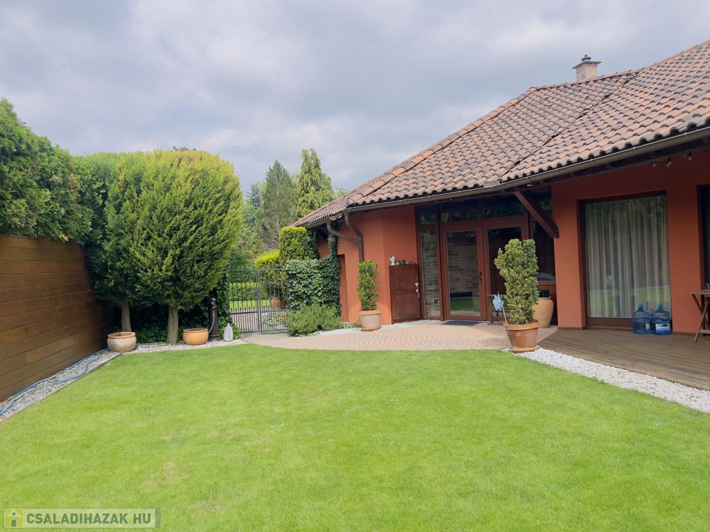Ez a praktikus kialakítású, 200 m²-es, nappali + 4 hálószobás, duplagarázsos családi ház, egy 1000 m²-es, gyönyörűen parkosított telken helyezkedik el. Az ingatlan külső és belső megjelenésében is az igényesség, időtállóság és kifinomult elegancia ötvöződik.