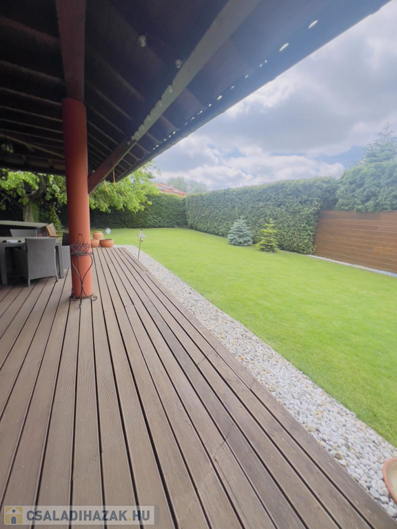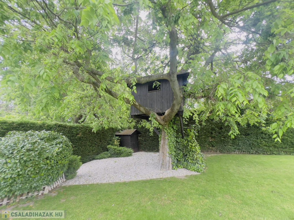 A házat gondosan ápolt, parkosított kert öleli körbe, melynek végében egy igazi gyerekkuckó várja a legkisebbeket: egy fára épített, hangulatos házikó, ami minden kisgyermek álma.