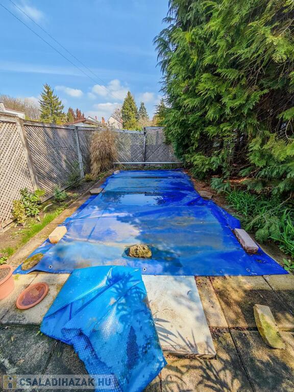A 385 m2-es telek igazi oázis: a parkosított udvarban egy saját medence biztosítja a kikapcsolódást, a kert gondozását pedig fúrt kút segíti. A kényelmet klíma, valamint elektromos nagykapu és garázskapu fokozza.