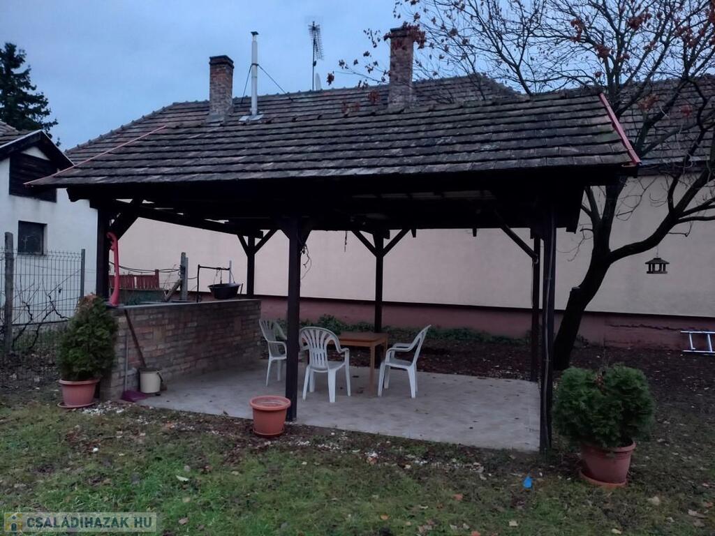 A kertben fedett kiülő és sütögető nyújt árnyékot nyáron.