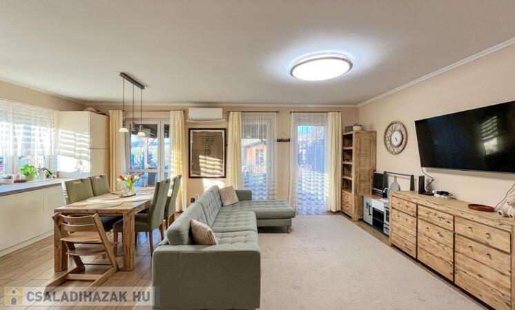 • TÁGAS ÉLETTEREK: Óriási, 34 NM-ES AMERIKAI KONYHÁS NAPPALI a közös családi pillanatokhoz, és 3 KÜLÖNÁLLÓ, LAMINÁLT PARKETTÁS HÁLÓSZOBA a nyugodt pihenéshez.