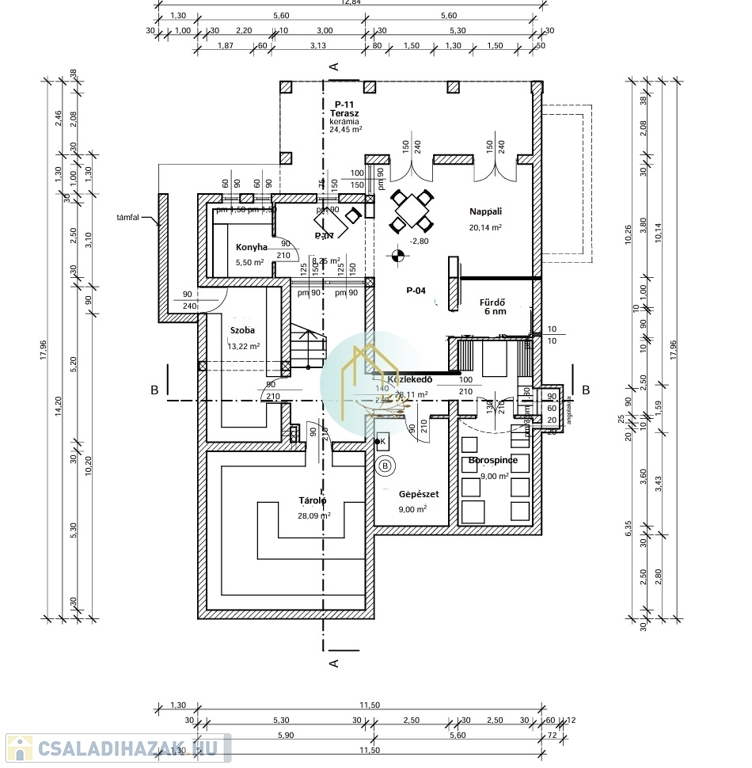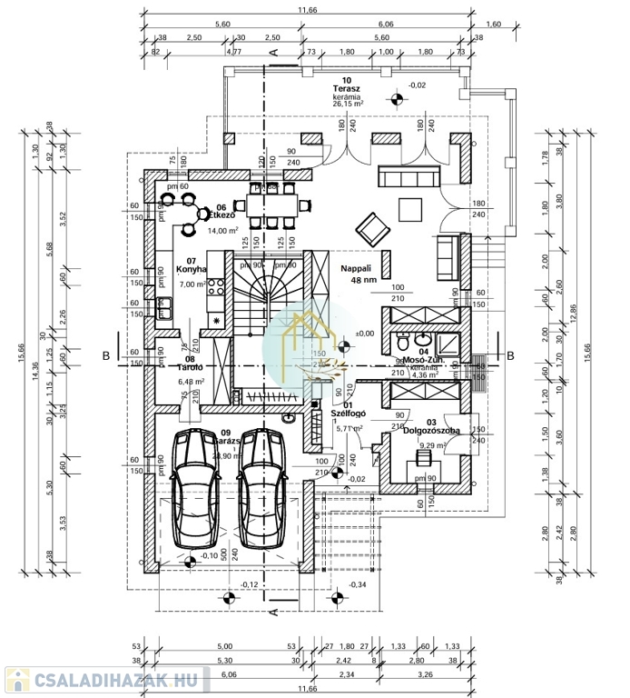 -garázs 2 autónak, előtér, dolgozó szoba,