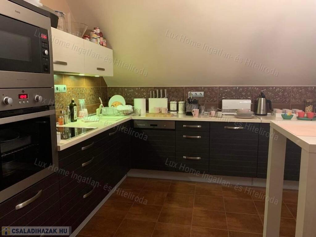Az ingatlan minden szintjén minőségi konyhabútor található beépített gépekkel,