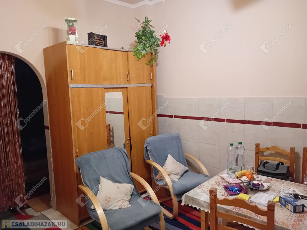 A ház belső elrendezése praktikus, tartalmaz egy konyhát, étkezőt, valamint egy fürdőszobát és WC-t egyben. A fűtésről vegyes tüzelésű kazán gondoskodik központi fűtéssel, így az ingatlan gazdaságosan fenntartható. A műanyag nyílászárók biztosítják a jó hőszigetelést, a tetőt és a vízrendszert is felújították, így a ház azonnal költözhető. A villanyrendszer szintén felújítva lett, így modern környezetet biztosít a lakóknak. Az ingatlan ideális lehetőség azok számára, akik szeretnének egy saját, jól karbantartott otthont, miközben a költségeket is figyelembe veszik. Az udvaron könnyűszerkezetes garázs van.