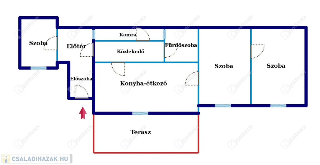 Konyha étkezővel, fürdőszoba, előszoba, kamra