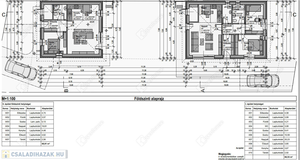 I. számú lakás – 66,53 m² | 79 millió Ft Kossuth kertalja utca felől megközelíthető