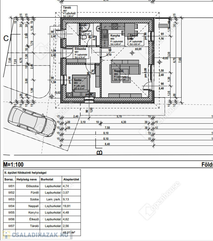 II. számú lakás – 48,91 m² | 59 millió Ft Fűzfa utca felől megközelíthető