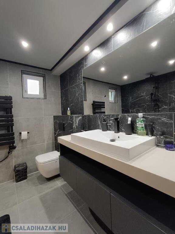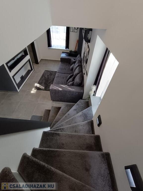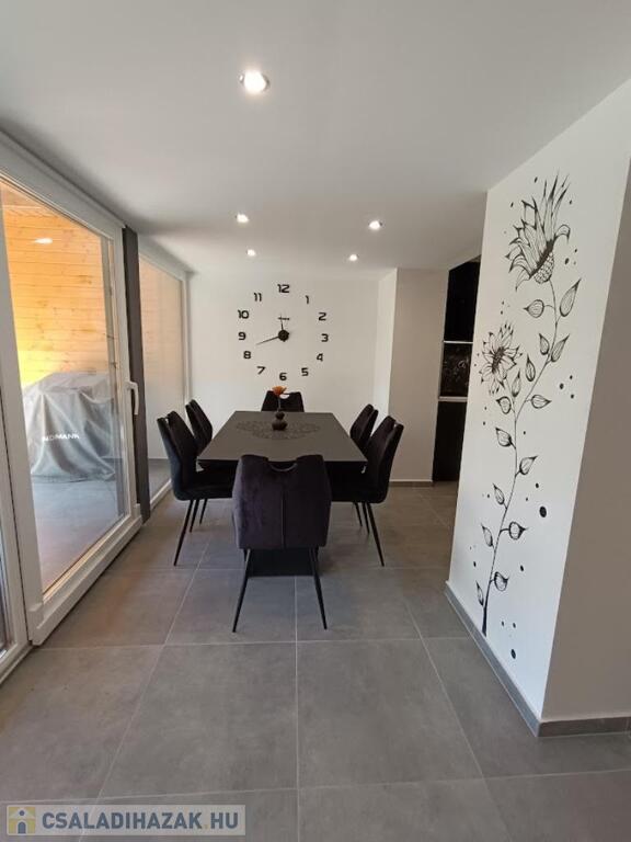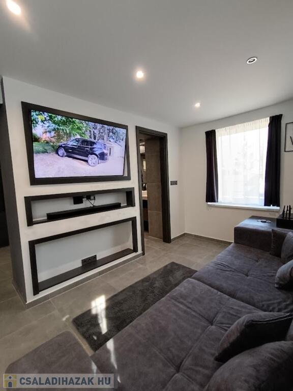 Az alsó szinten padlófűtés, modern LED világítás, klíma, antracit kanapé, Samsung TV és házimozi, valamint egy stílusos konyha gránit mosogatóval és rejtett konnektorokkal vár. Kerámia étkezőasztal hat székkel hívogat egy kellemes étel elfogyasztására