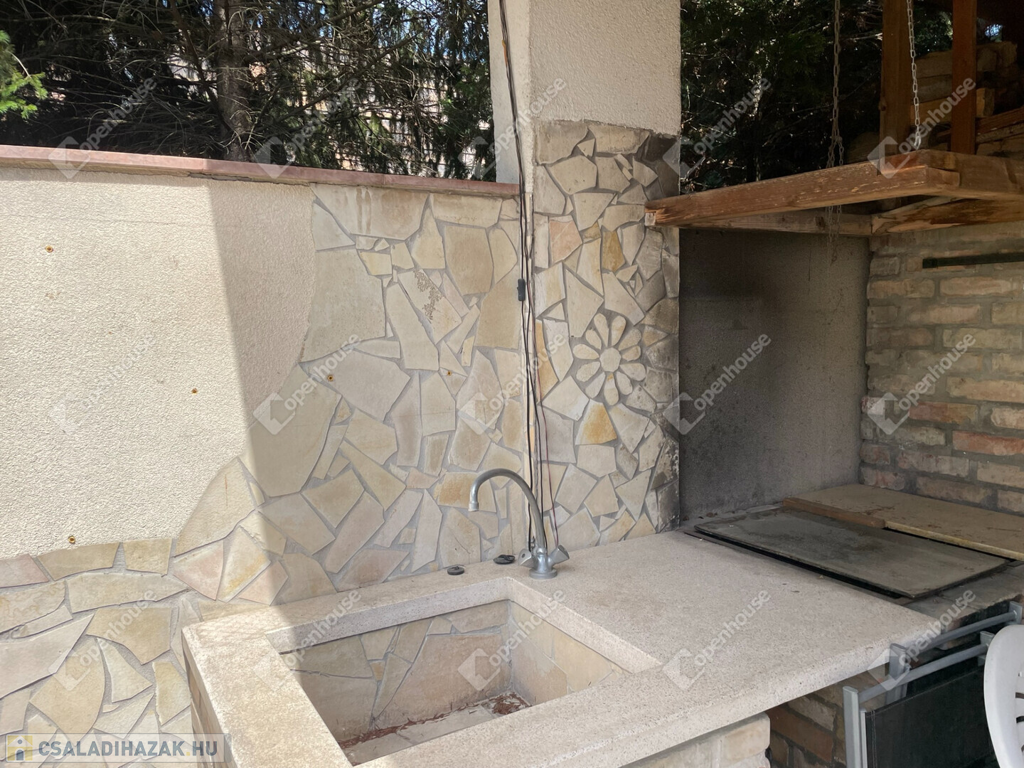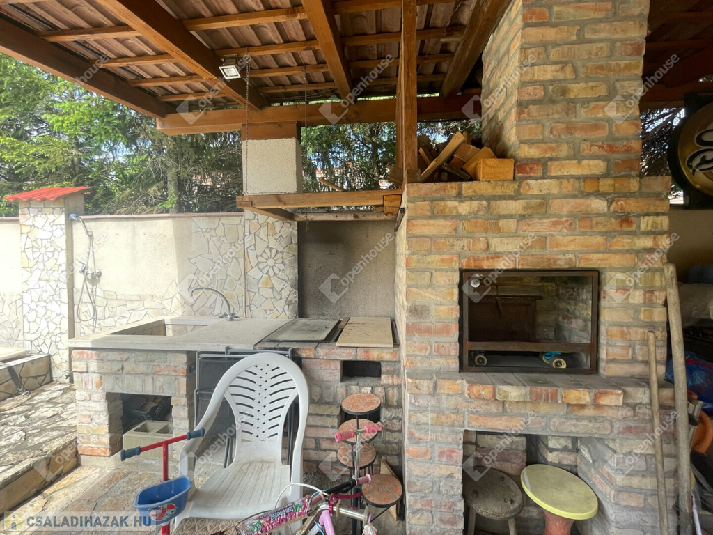 A külső területen medence, fedett terasz, szerszámos tároló, grillező és kültéri toalett is kialakításra került, így ideális választás mindennapi pihenéshez és családi programokhoz egyaránt. Az ingatlanban maradó ingóságok közé tartozik a konyhabútor, a beépített előtéri szekrény és a fürdőszoba berendezése.
