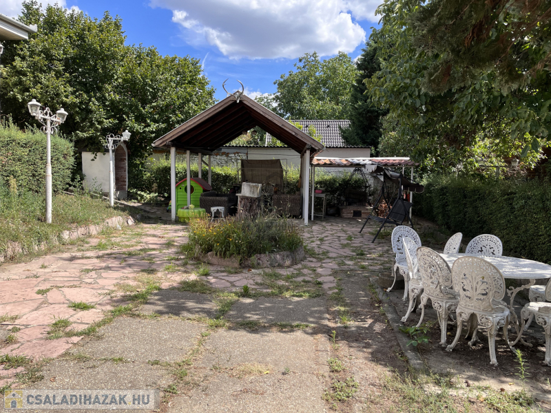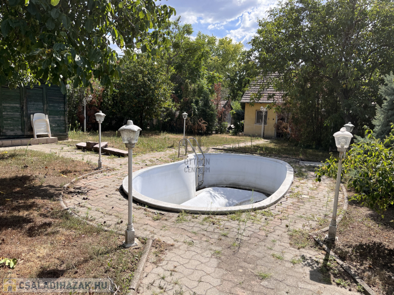 Tatabánya közepén Bánhidán eladó, egy több mint kétezer négyzetméteres telken lévő ingatlan. A telek utcafronti szélessége 25 méter. A főépület mellett található egy különálló kétszobás ház, egy hatalmas garázs szerelőaknával melléképülettel. A tágas udvaron a hangulatos grillező mellett egy medencét is találunk.