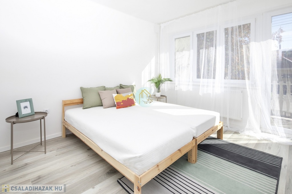 -Tágas és szinteltolásos nappali - étkező, napfényes konyha, előszoba, 2 nagy méretű külön nyíló erkélyes szoba, fürdőszoba-Wc, plusz vendég Wc, és tároló.