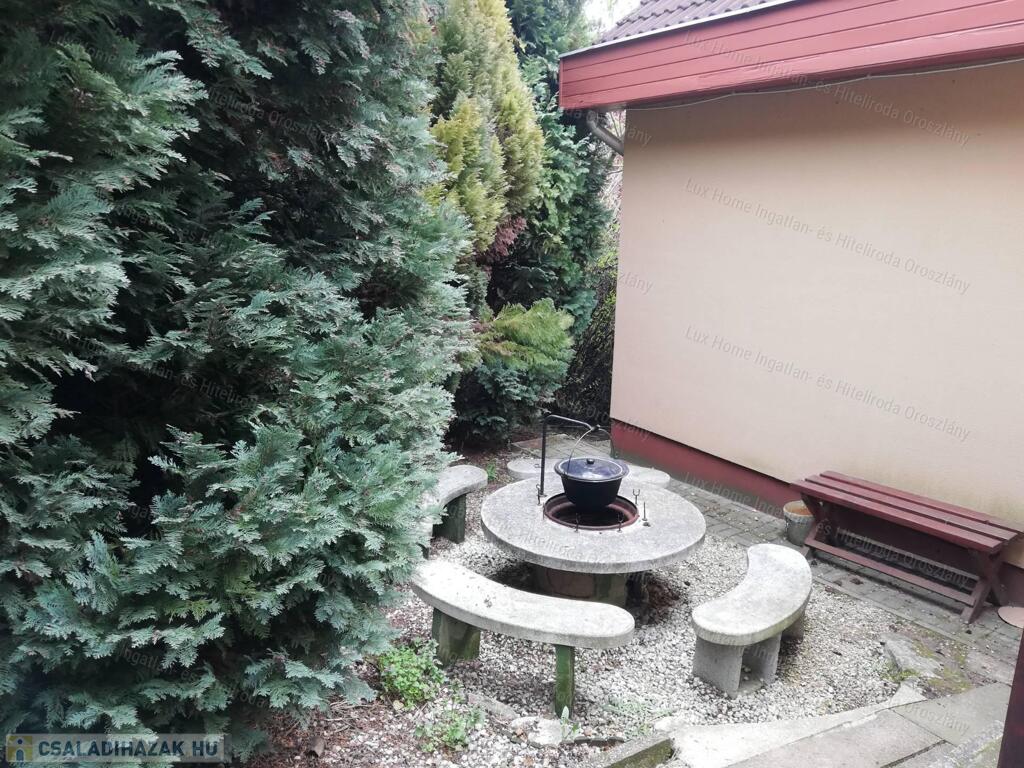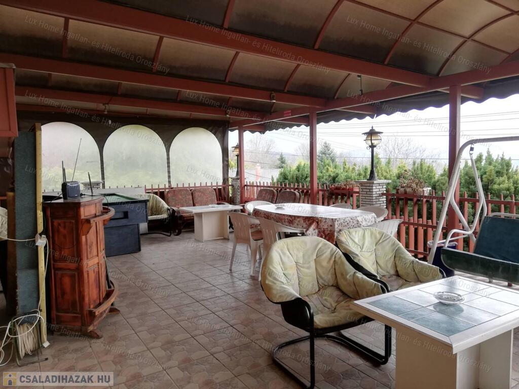 1000 m2-es telek, rendezett jó kerítéssel. 150 m2-es alapterületű ház, 4 emelettel, kerti kiülővel, sütögetővel, hatalmas terasszal amiről remek panoráma tárul elénk. A kertben hatalmas örökzöldek találhatóak ami még természetközelibbé teszi a kertet.