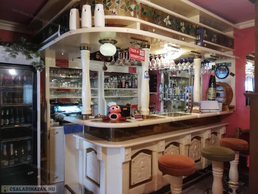 Teljes berendezéssel együtt eladó. Az építés során nagy gondot fordított a tulajdonos az apró részletekre is. Masszív díszes bárpult, Tiffany üvegek háttérvilágítással, és egyedülállóan impozáns mennyezeti megvilágított Tiffany üveg díszítéssel és több helyen rejtett hangulatvilágítások is lettek beépítve.