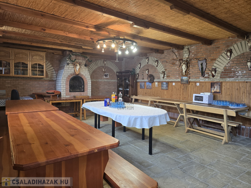 A családi együttlétek, baráti összejövetelek és a nyugodt hétvégék helyszíne lehet a külön épületben kialakított vadászterem, ahol szintén kialakításra került fürdőszoba és különálló wc is. A melléképület alapterülete 114 nm.