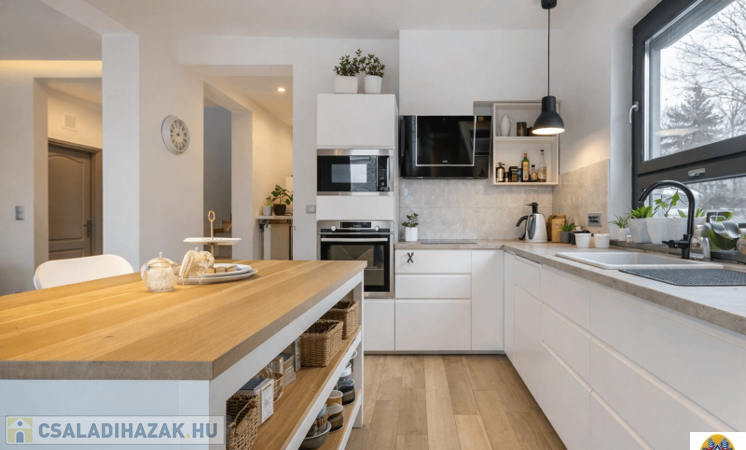 Telkiben csendes zsákutcában, természetközeli helyen, eladó egy nettó 151 nm-es , kétszintes, 4 szobás, duplakomfortos, 3 gépkocsibeállásos, újszerű állapotban lévő családi ház, szép és gondozott kerttel.