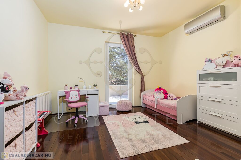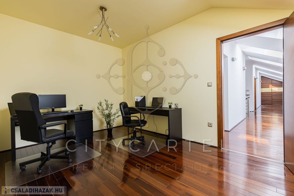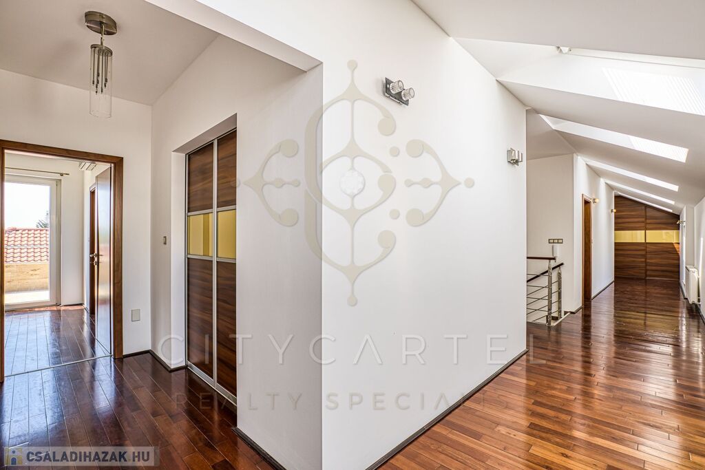 Em.: 4 szoba, 2 fürdő, 3 gardrób, teraszok, zöldtető.
