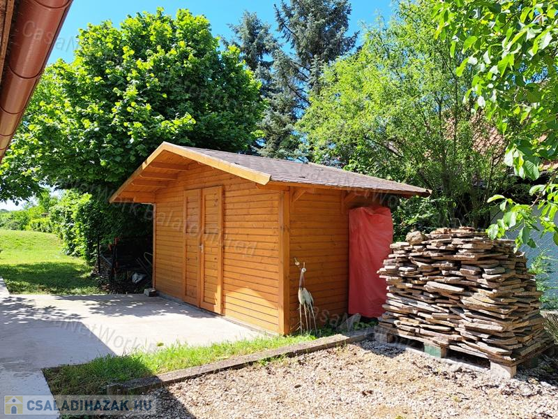 - a telken egy grillezőt egy 10 m2 faházat és három autó parkolására alkalmas kerti beálló is találunk