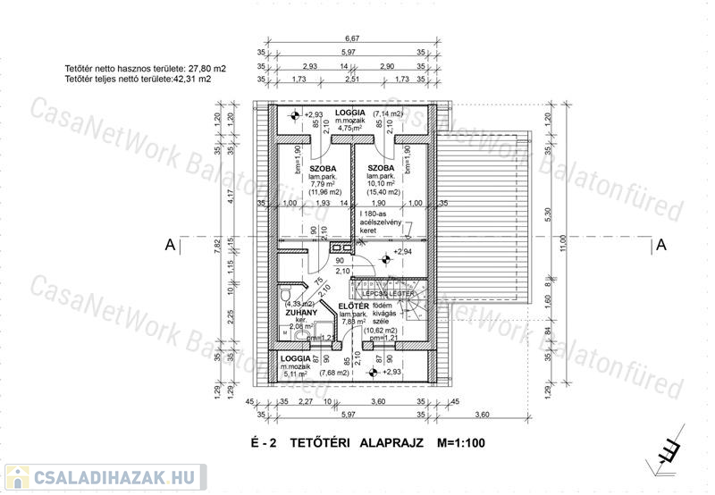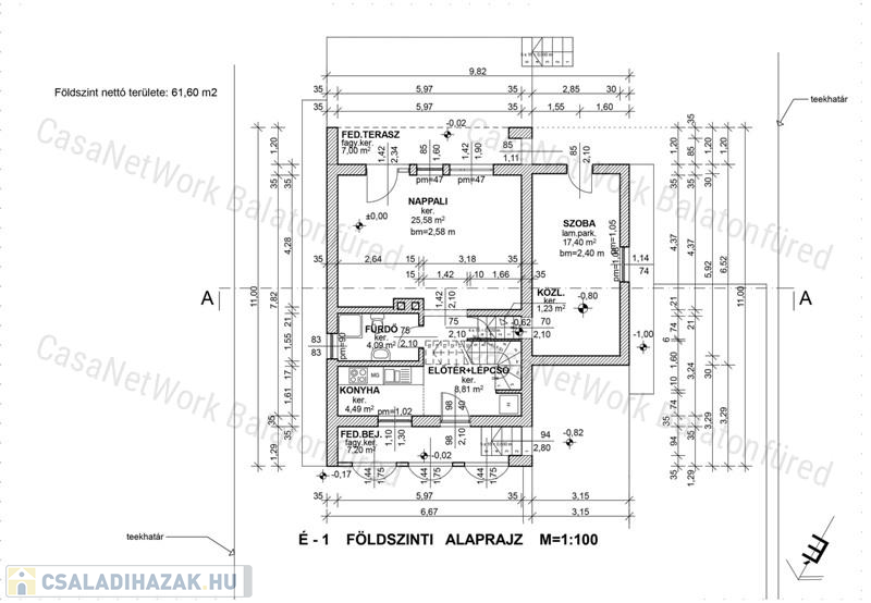 - szépen parkosított telek 1037 m2, a 2+fél szintes, terasszal és több erkéllyel rendelkező épület 104 m2 hasznos alapterületű