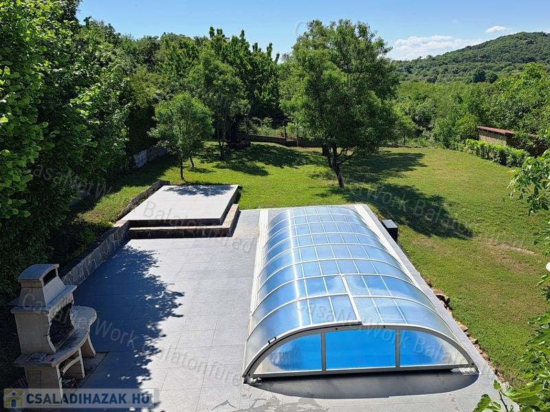 - egy 8 x 3 m kb. 1,5 m mély fűthető , fedhető medence is található a hangulatos természetközeli kertben ( a medence folyamatosan gondozott és tökéletesen működik )